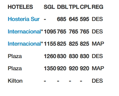 - Bus Semi cama, guía acompañante, servicio abordo con almuerzo, merienda y desayuno abordo