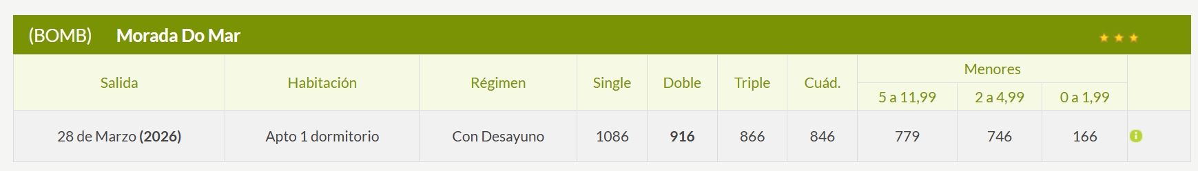 Las tarifas, condiciones y/o reglas detalladas en este programa están sujetas a disponibilidad y cambios por parte de los proveedores de los servicios incluídos sin previo aviso. Los precios de menores corresponden a un menor compartiendo habitación con dos adultos.