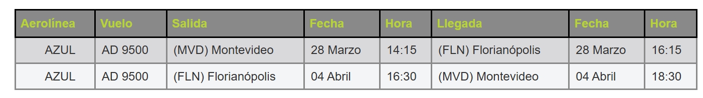 Billete aéreo Montevideo/Florianopolis/Montevideo