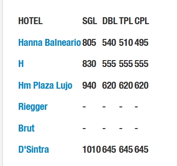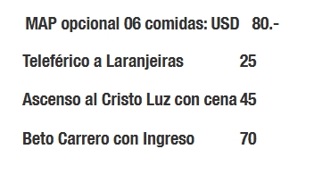 Menores de 3 a 5 años, máximo 1 por habitación acompañados de 2 adultos: U$S 260.- (butaca, servicio a bordo y seguro médico)