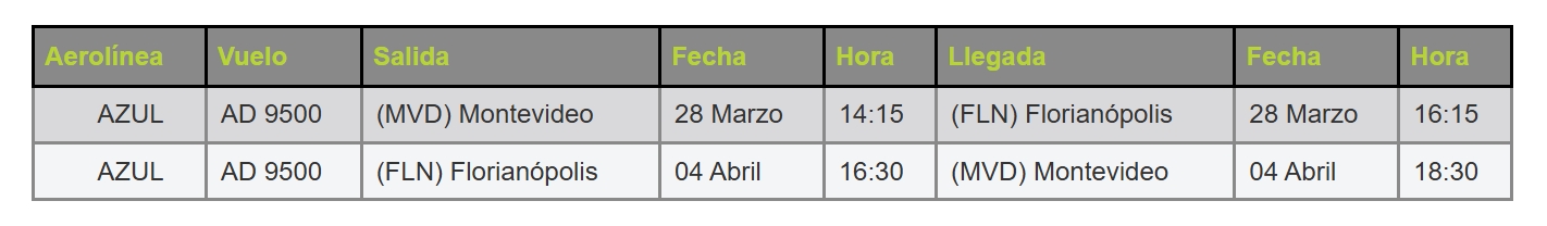 Billete aéreo Montevideo/Florianopolis/Montevideo