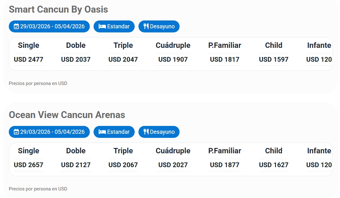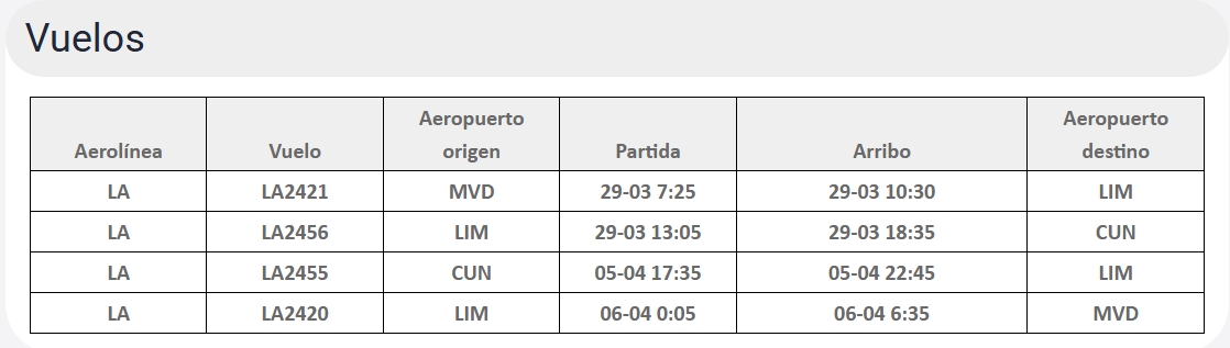 - Pasaje aéreo: Montevideo / Lima / Cancún / Lima / Montevideo