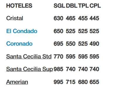 - Hotel Santa Cecilia las cenas son en el mismo hotel (bufet de entradas, plato principal fijo y postre fijo)