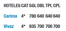 - Menores de 3 a 5 años pagan asiento, servicio a bordo y seguro médico U$S 250.- compartiendo con 2 adultos, máximo 1 por habitación.