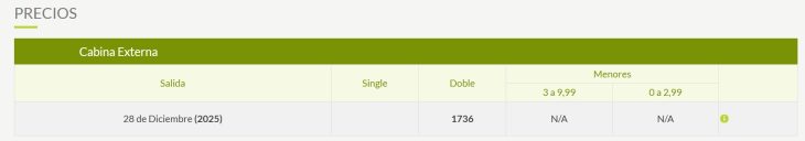 Las tarifas, condiciones y/o reglas detalladas en este programa están sujetas a disponibilidad y cambios por parte de los proveedores de los servicios incluídos sin previo aviso. Los precios de menores corresponden a un menor compartiendo habitación con dos adultos.