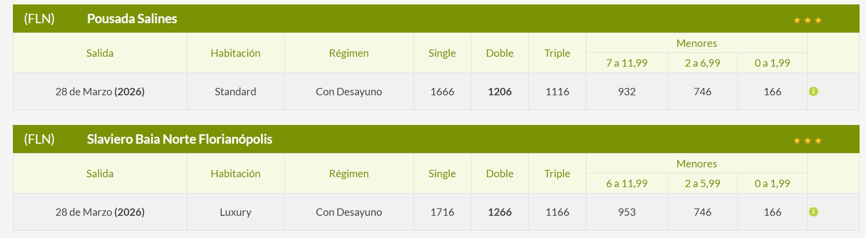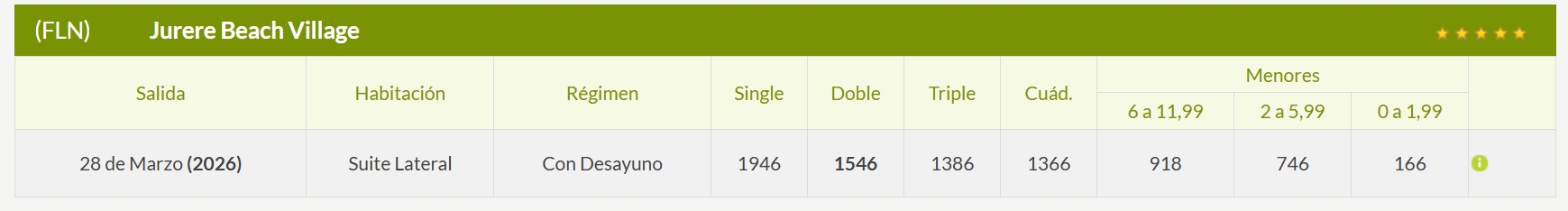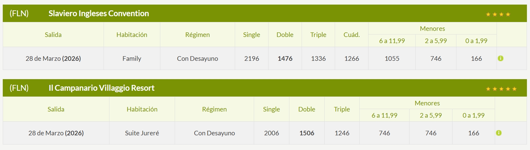 Las tarifas, condiciones y/o reglas detalladas en este programa están sujetas a disponibilidad y cambios por parte de los proveedores de los servicios incluídos sin previo aviso. Los precios de menores corresponden a un menor compartiendo habitación con dos adultos.