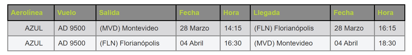 Billete aéreo Montevideo/Florianopolis/Montevideo