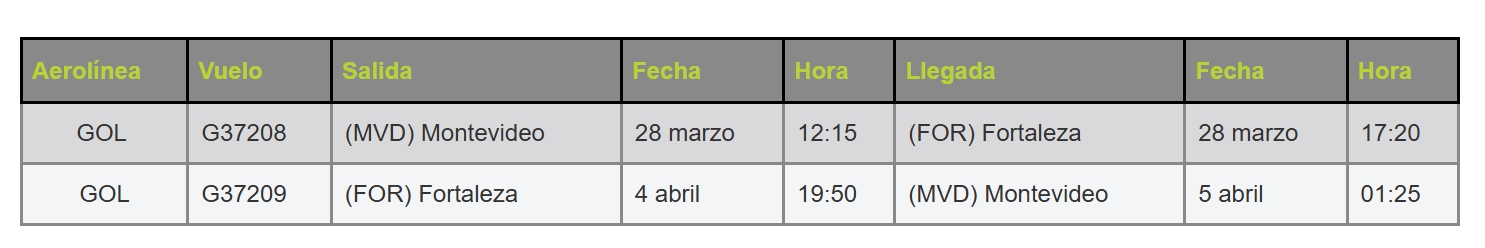 Billete aéreo Montevideo/Fortaleza/Montevideo