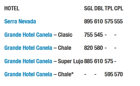 Menores de 0 a 2 años máx. 1 por habitación compartiendo con 2 adultos: Sin Cargo