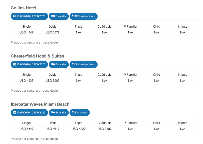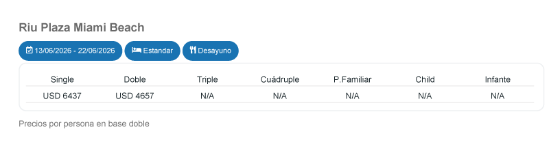 Los precios de menores corresponden a un menor compartiendo habitación con dos adultos.