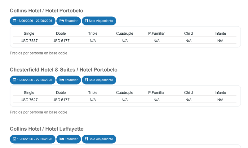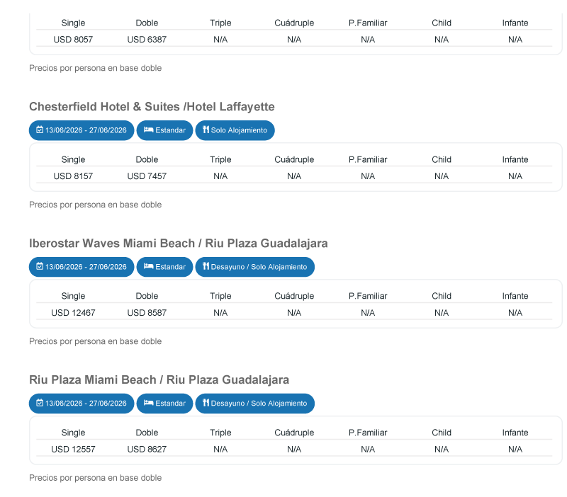 Los precios de menores corresponden a un menor compartiendo habitación con dos adultos.