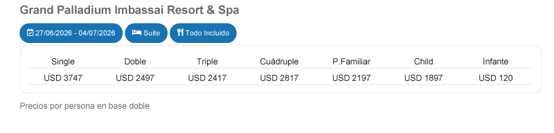 Los precios de menores corresponden a un menor compartiendo habitación con dos adultos.