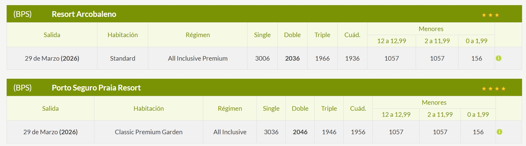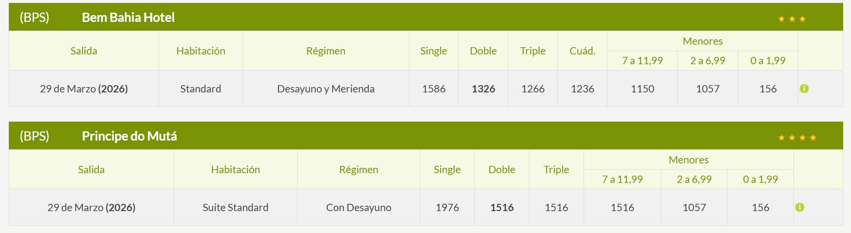 Las tarifas, condiciones y/o reglas detalladas en este programa están sujetas a disponibilidad y cambios por parte de los proveedores de los servicios incluídos sin previo aviso. Los precios de menores corresponden a un menor compartiendo habitación con dos adultos.