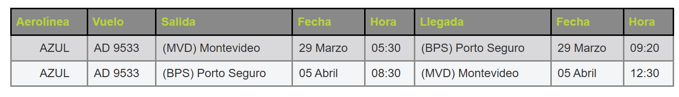 Billete aéreo Montevideo/Porto Seguro/Montevideo