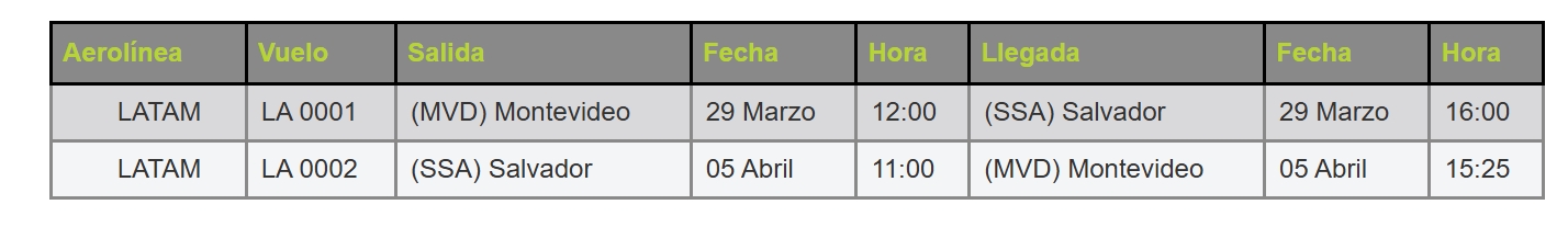 TARIFAS DINAMICAS. Los valores y disponibilidad son sujeto a confirmación al momento de la reserva.