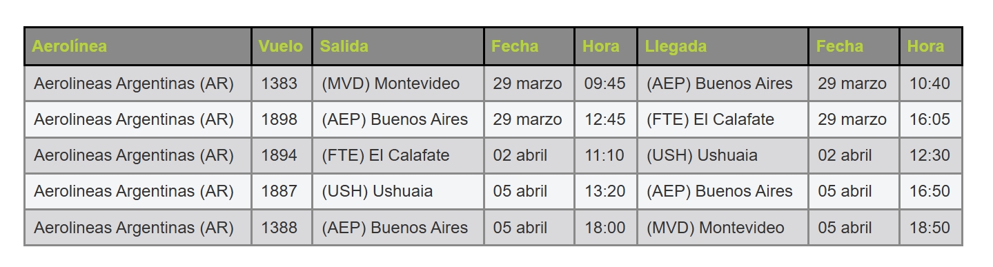 Pasaje aéreo Montevideo / Buenos Aires / Ushuaia / El Calafate / Buenos Aires / Montevideo