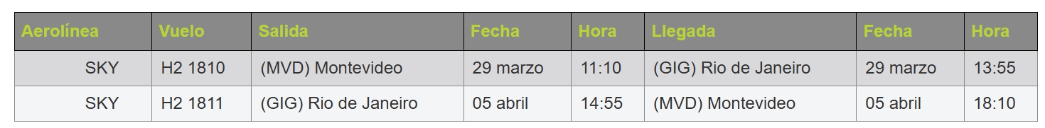 Billete aéreo Montevideo/Rio De Janeiro/Montevideo